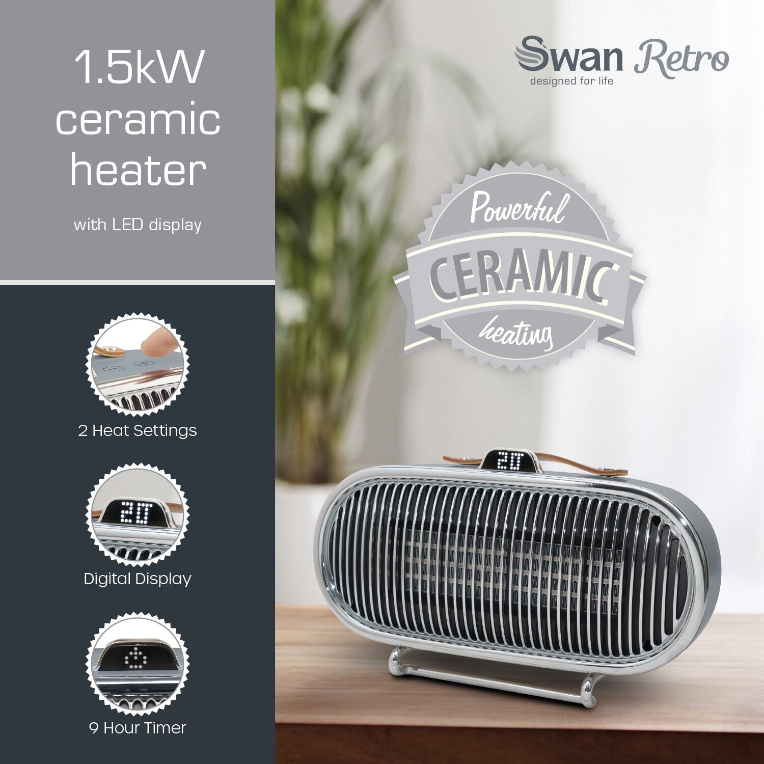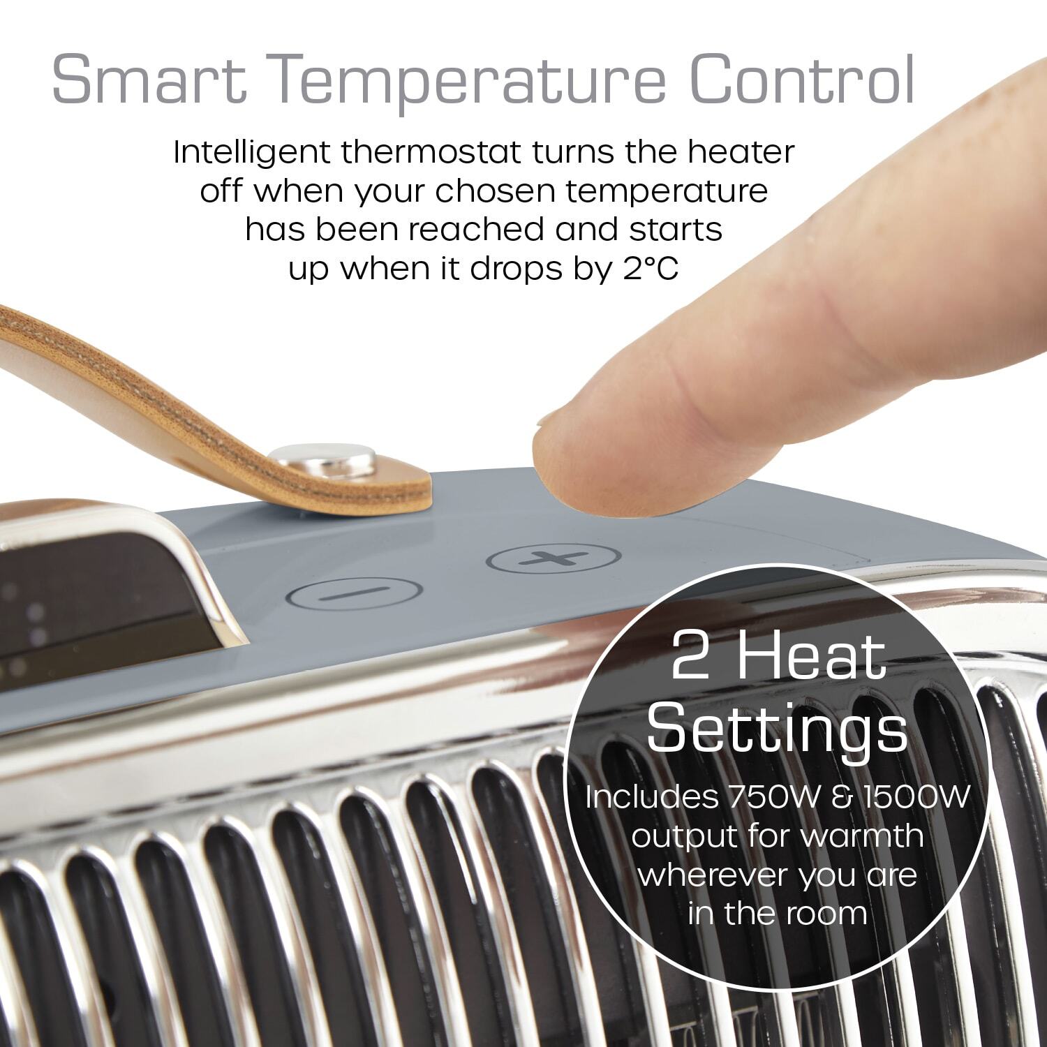 Powerful ceramic heating – rapidly generates heat throughout your room in seconds, using less energy than conventional heating. Features an integrated carry handle to easily move around your home.