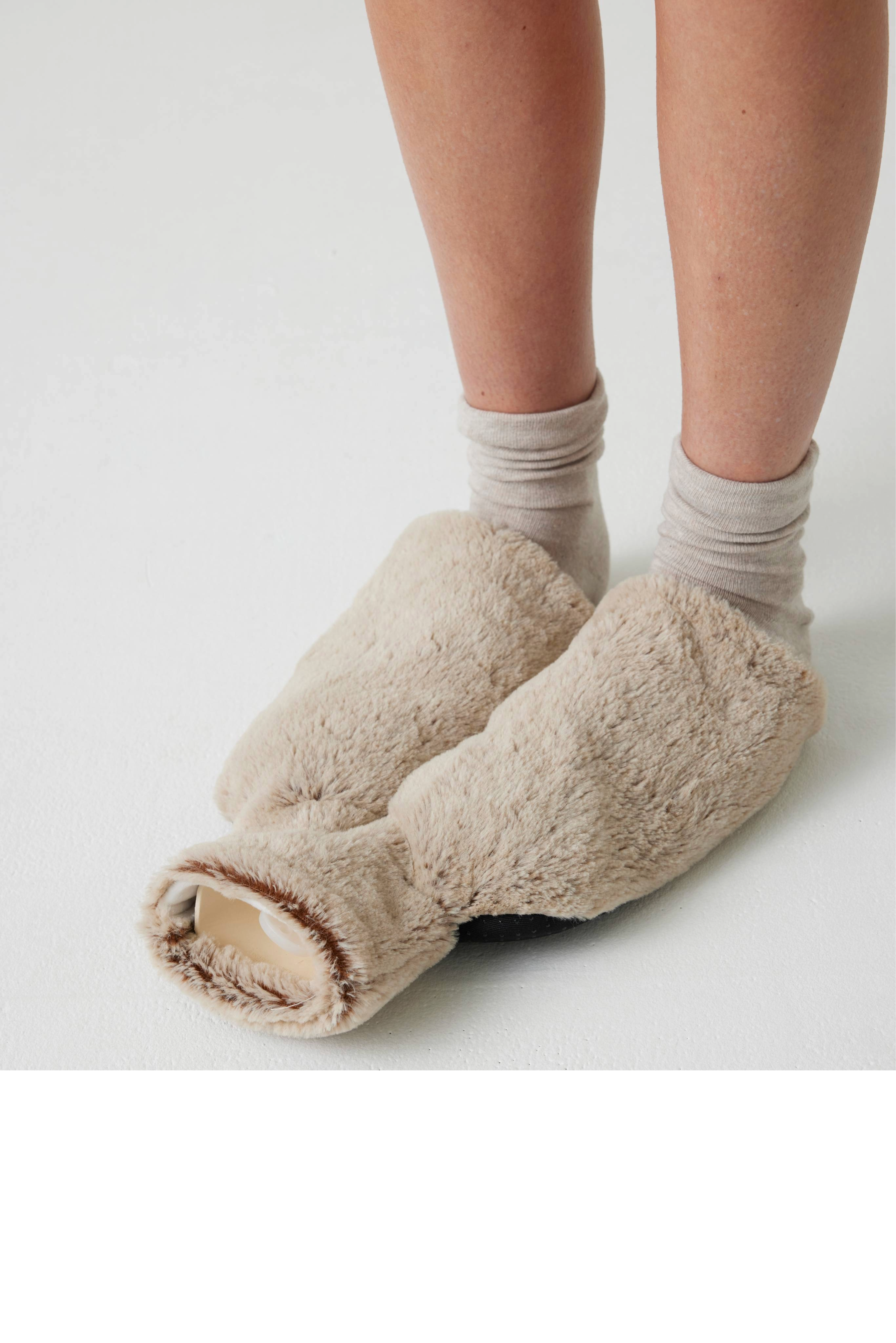 Get ready for the chilly season with this comforting foot hot water bottle. With its soft fur cover, it's an easy way to keep your feet toasty warm day or night.