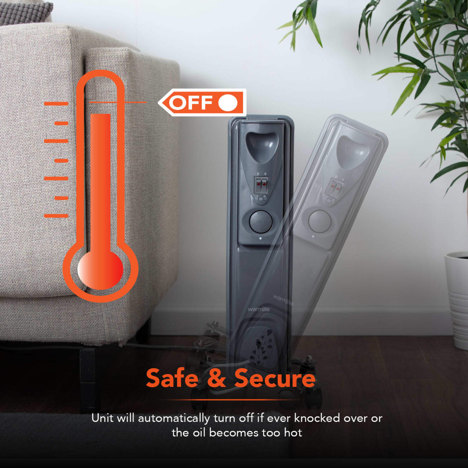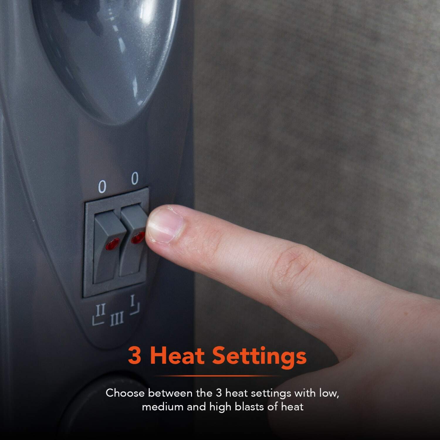 Features:• 1.5kw oil filled radiator• 3 heat settings – 600w - 1500w• Adjustable thermostat• Safe & secure• Lightweight & portable
