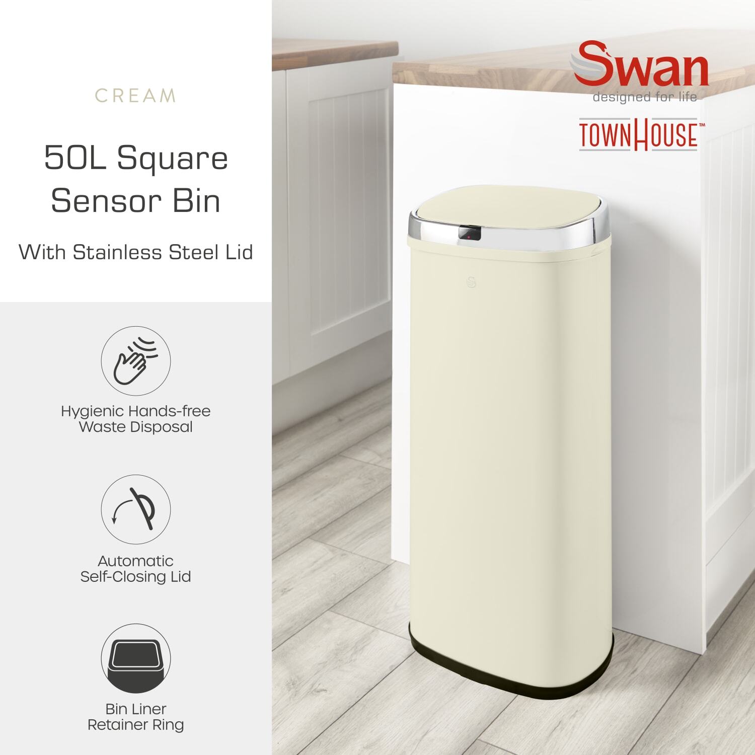 • Hygienic hands free waste disposal – Approach the bin or swipe near the sensor bar to open the lid, perfect if you have your hands full