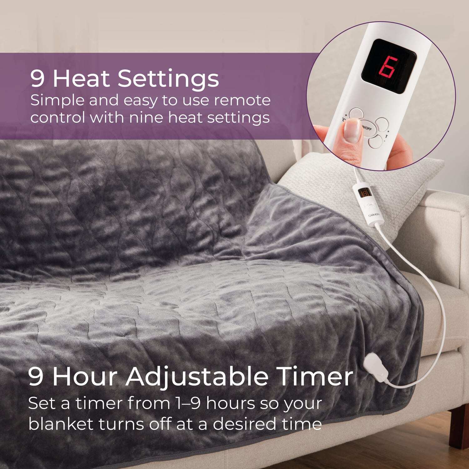Fleece luxury electric heated throw and over blanket. Features:• 85w output• Soft touch luxury fleece material• 9 hour adjustable timer• Detachable controller