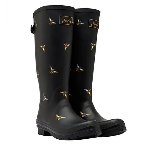 The Joules Bee wellies with adjustable back gusset, are tall in length, fully waterproof and handcrafted using hardwearing, natural rubber.