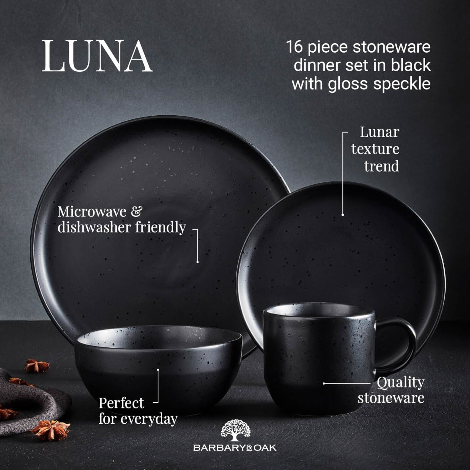 Lunar textured trend. Matte black with gloss speckle glaze, the perfect choice for modern, fashionable tableware.