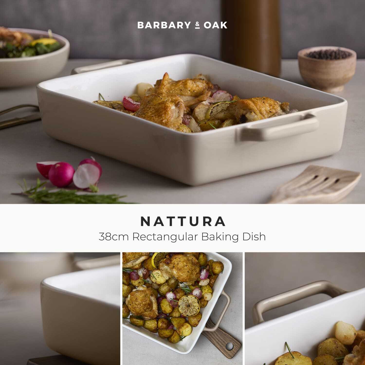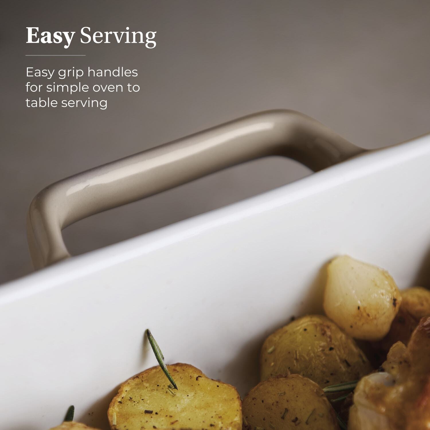 • Easy serving – easy grip handles for simple oven to table serving
