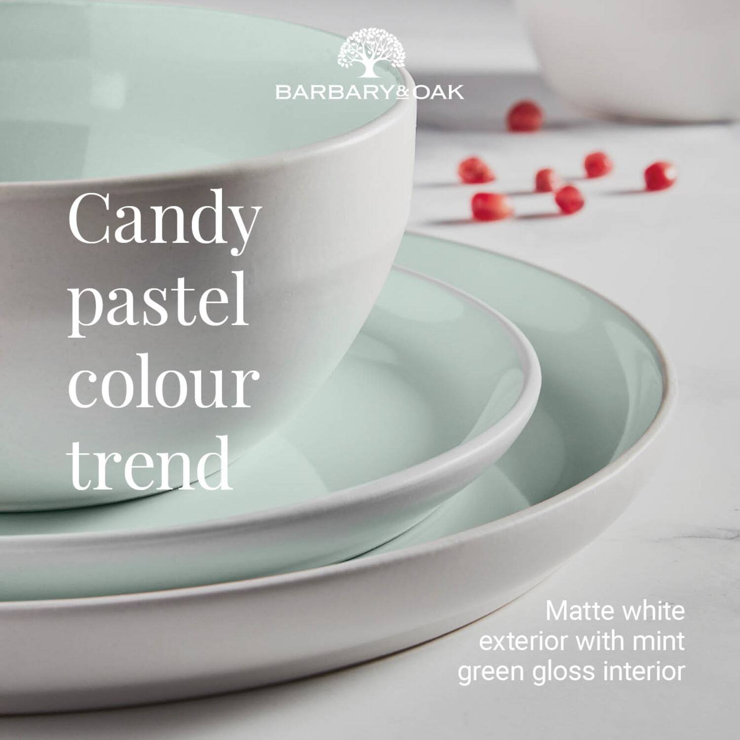 16 piece stoneware dinner set.Features:• Candy pastel colour trend• Microwave and dishwasher friendly Set comprises:• 4x dinner plates• 4x side plates• 4x bowls• 4x mugs