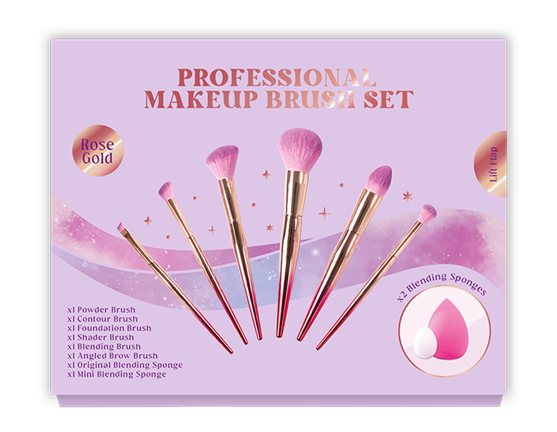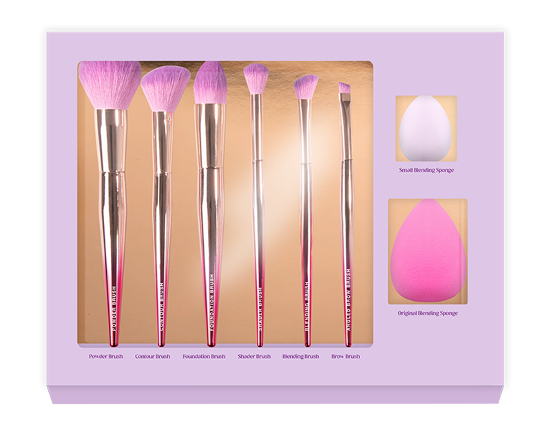 Presented in a stylish pink gift box, lift flap to reveal brushes and sponges and a brush guideline that shows how to use each tool.