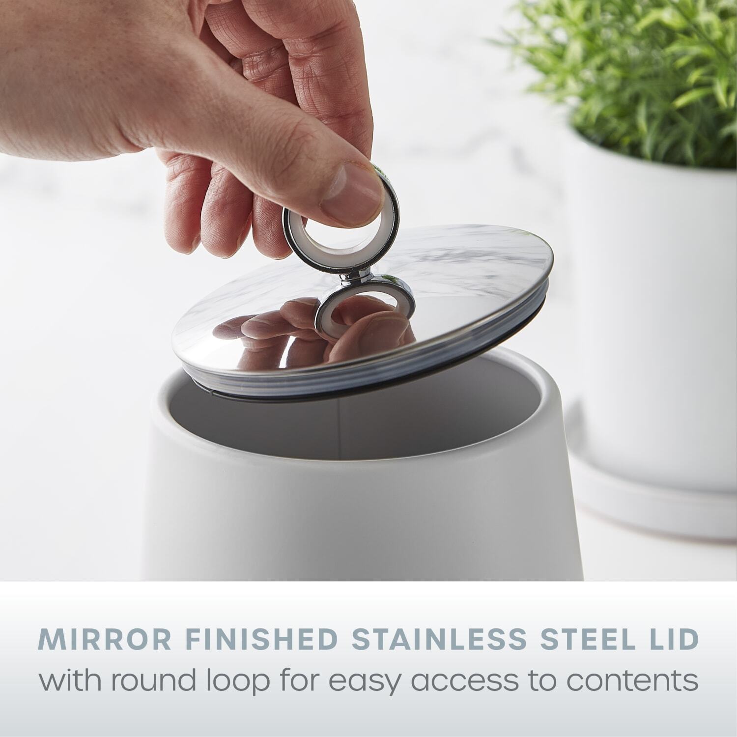 • Mirror finish stainless steel lid with round loop for easy access to contents