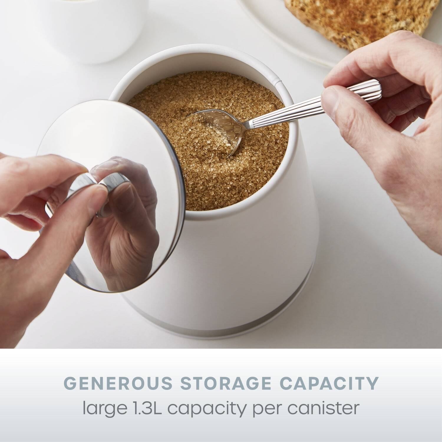Features:• Mirror finish stainless steel lid with round loop for easy access to contents• Airtight lids lock in the freshness• Generous storage capacity – large...