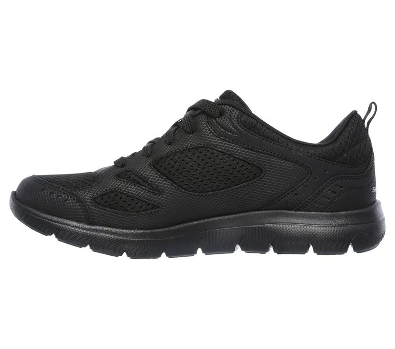 Reach the height of comfort and athletic style with Skechers summits. This sporty lace-up features a leather and mesh upper and a cushioned Skechers memory foam comfort insole.