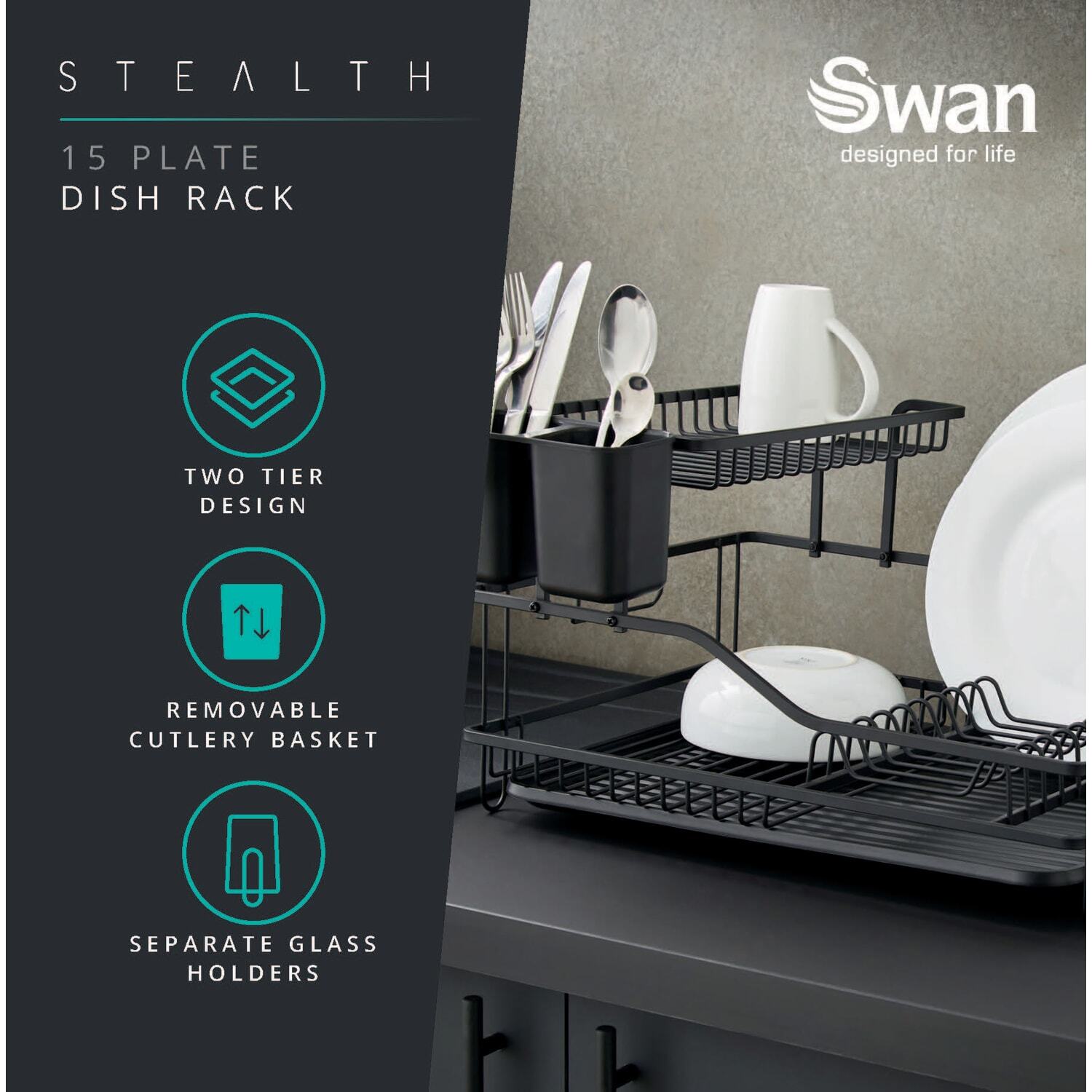 • Spacious dish rack – robust dish rack offers enough space for up to 15 standard size dinner plates (27cm)