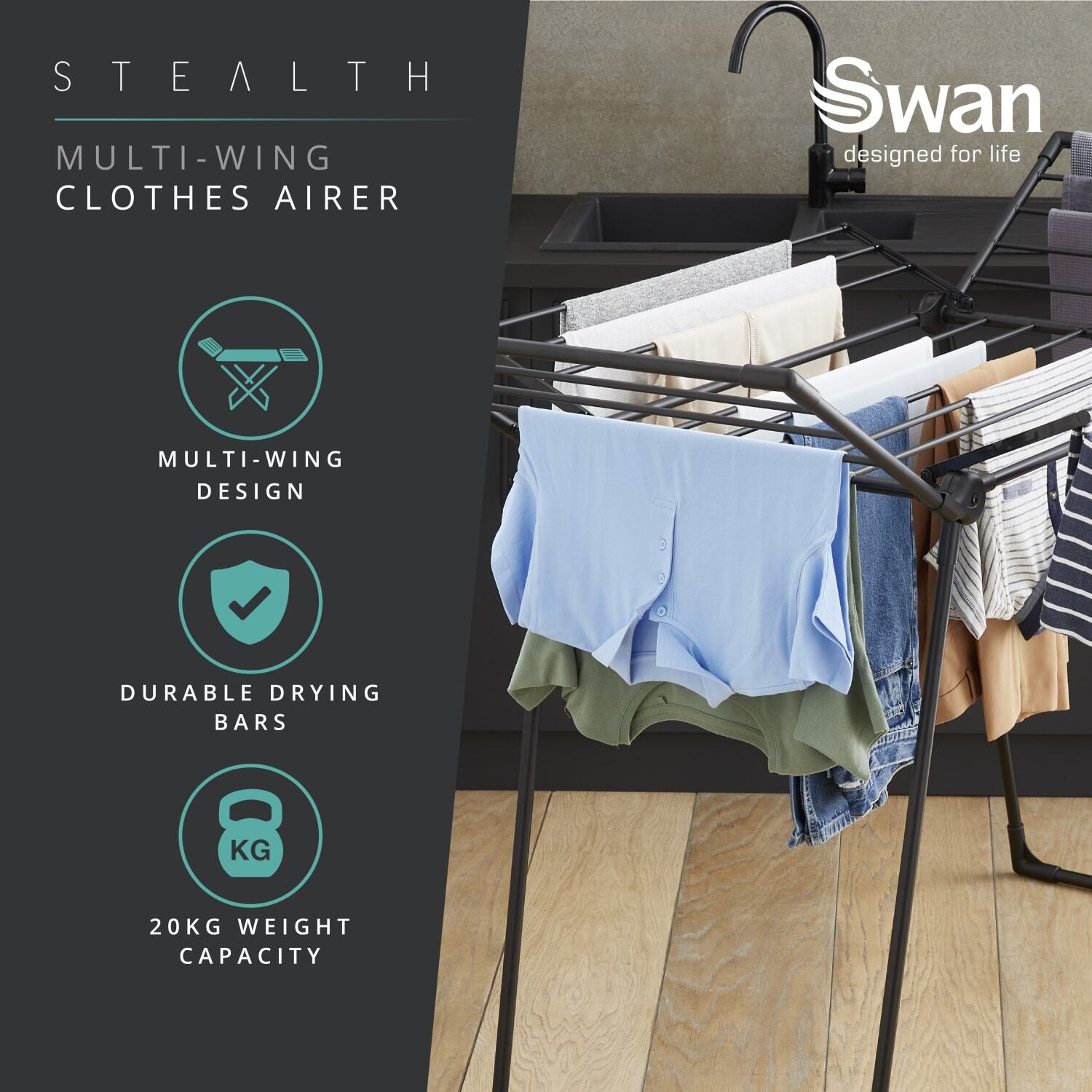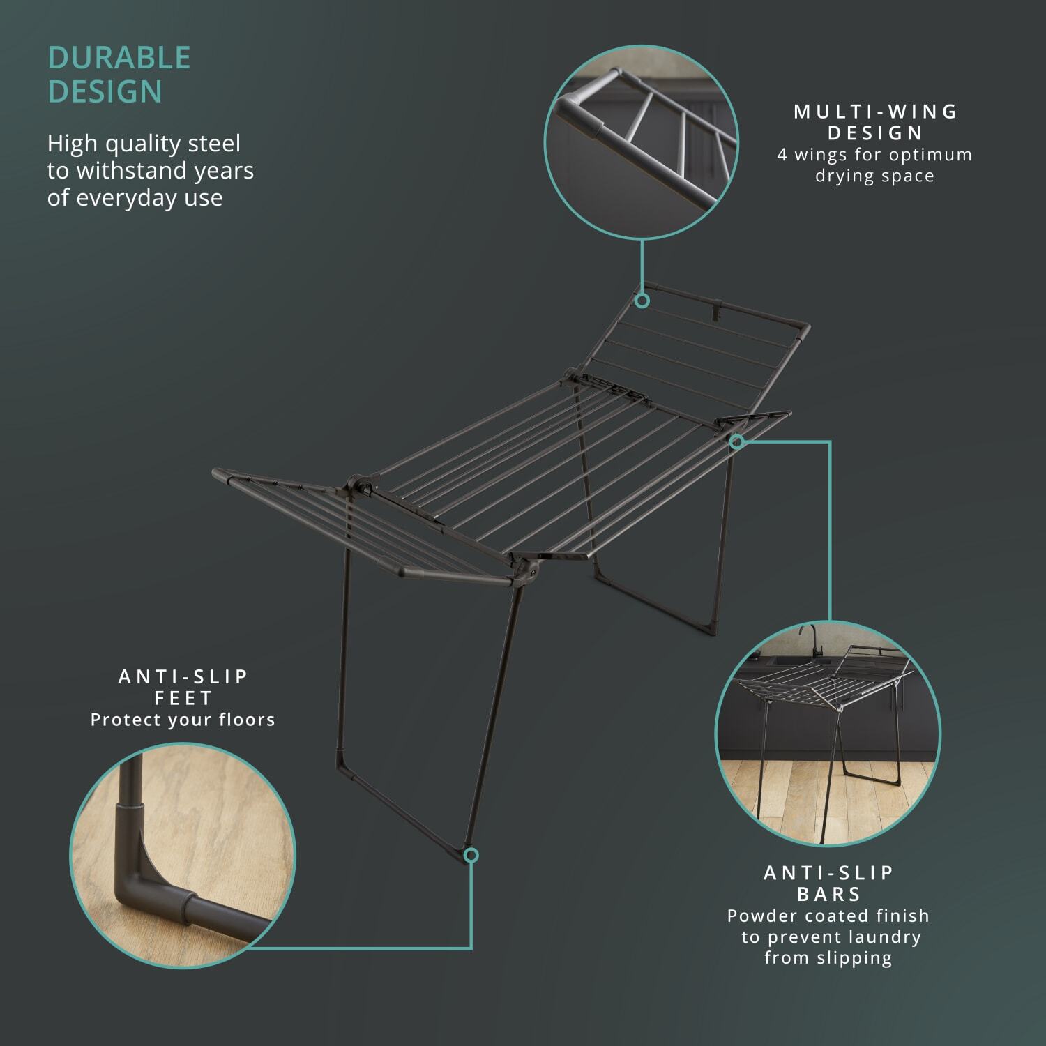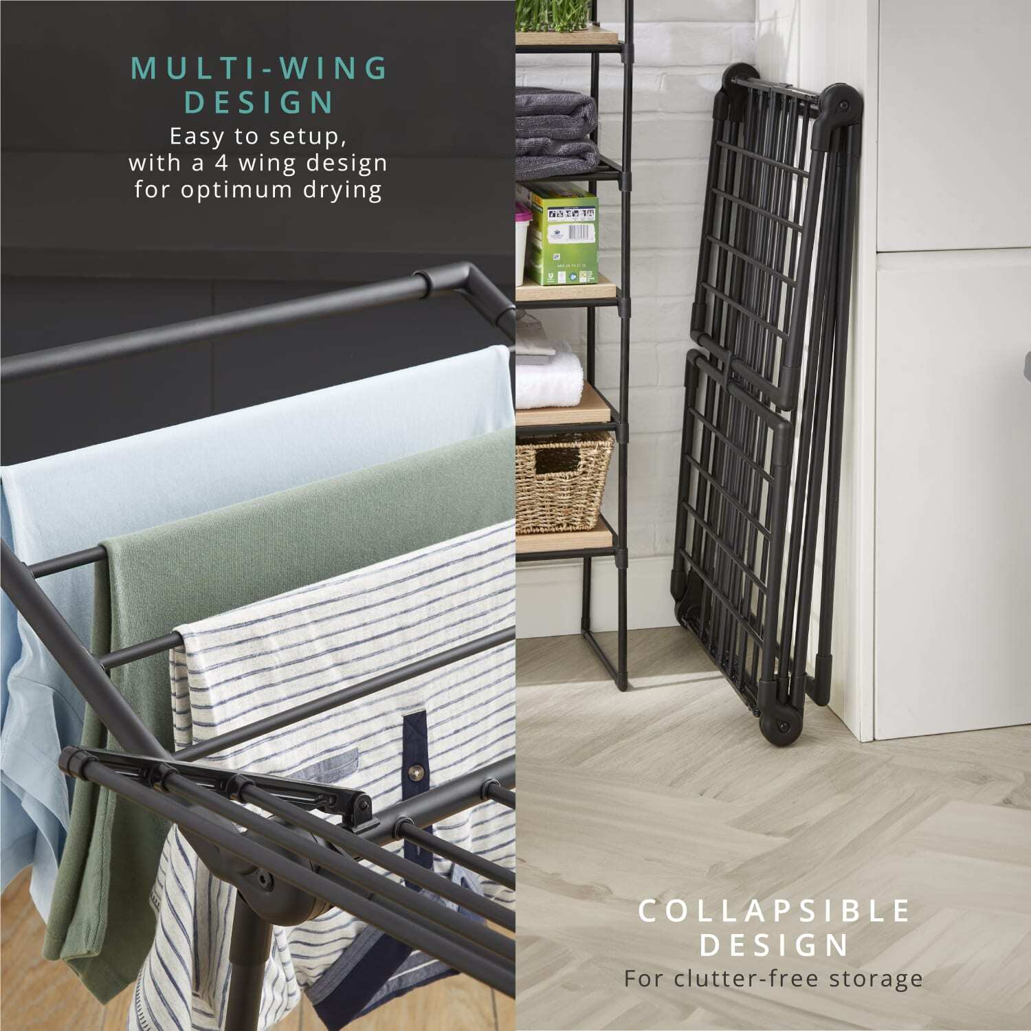 • Multi wing design – easy to setup, with a 4-wing design for optimum drying