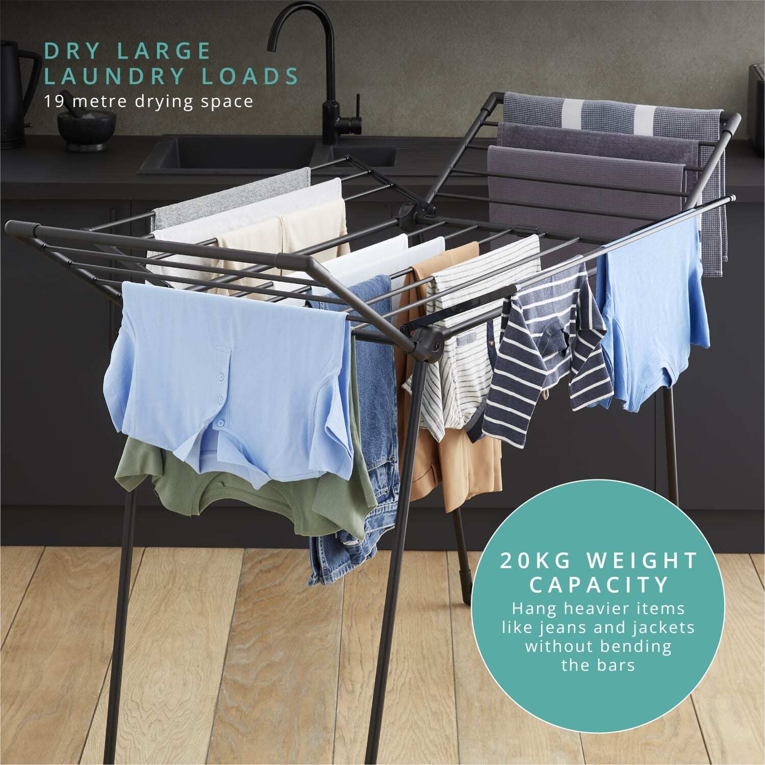 • Dry large laundry loads with a 19m drying space
